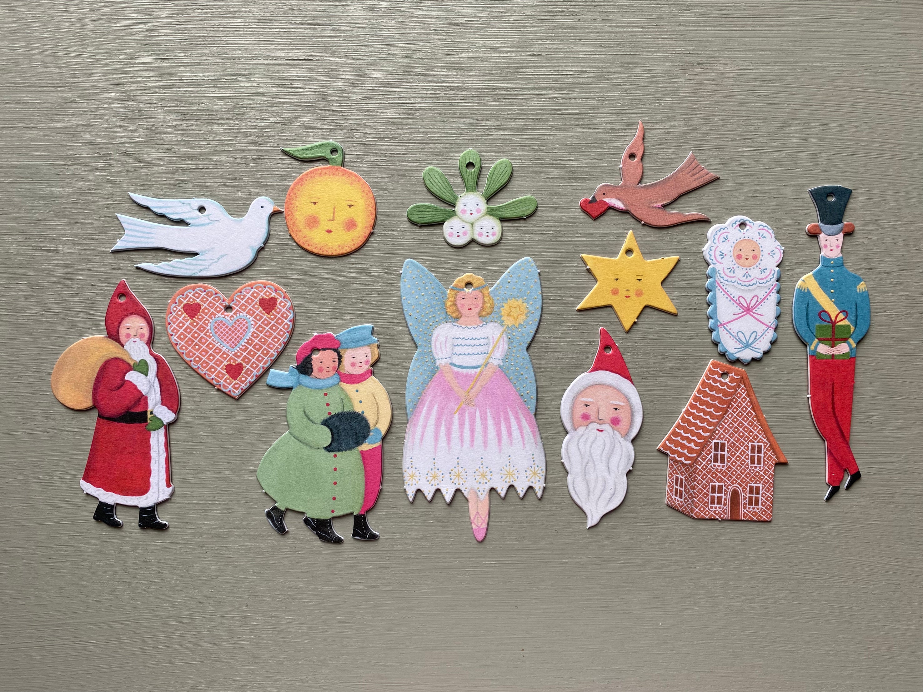 Set of 13 Die-Cut card, Press-out Christmas Decorations by Elizabeth Harbour