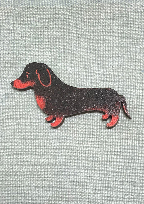 Wooden pin brooch with bar badge pin by Elizabeth Harbour. The design is laser cut from sustainably sourced birch plywood and printed with UV cured inks. Made in England.