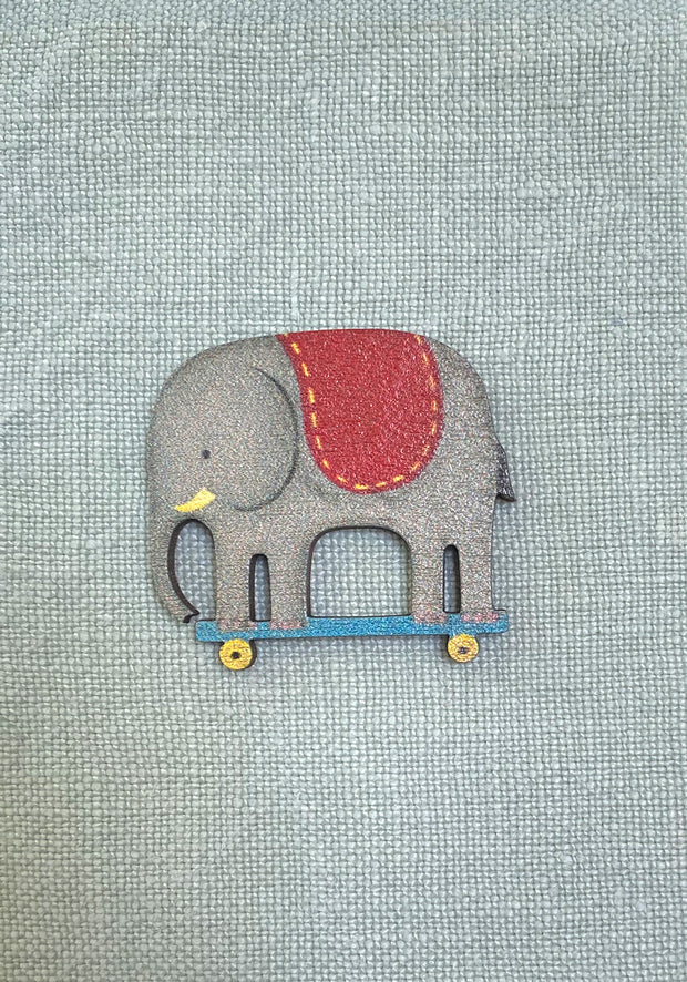 Wooden pin brooch with bar badge pin by Elizabeth Harbour. The design is laser cut from sustainably sourced birch plywood and printed with UV cured inks. Made in England.