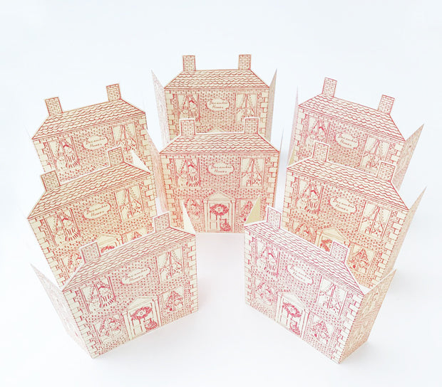 Eight A5 press out Christmas postcards, press out and simply assemble to create a standup Christmas house