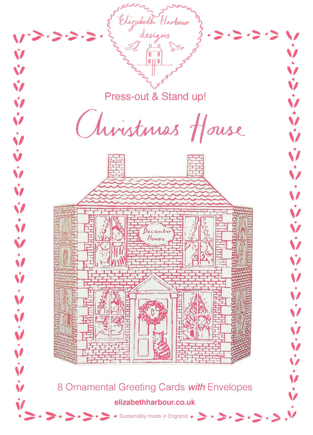 Pack Of 8 Press-Out Stand-Up Christmas House Greetings Cards with envelopes.