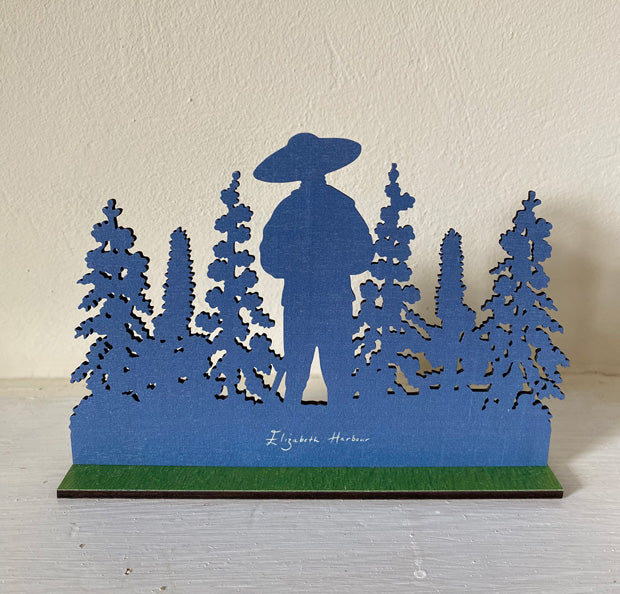 The Floralist' a traditional wooden mantle ornament by Elizabeth Harbour. The design is laser cut from sustainably sourced birch plywood and printed with UV cured inks . It is beautifully printed on the front from an original artwork by Elizabeth Harbour, and in one colour on the back so it can be viewed in silhouette. The ornament is simple self-assembly so that it can be posted easily, a lovely decoration for the home.