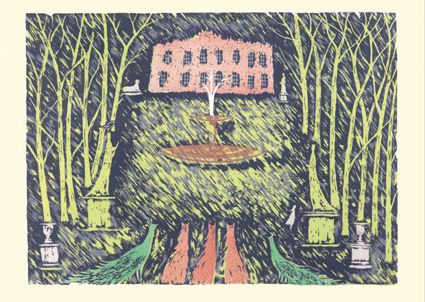 Soft white 300gsm card; comes with gummed envelope, packed in a biodegradable cello bag